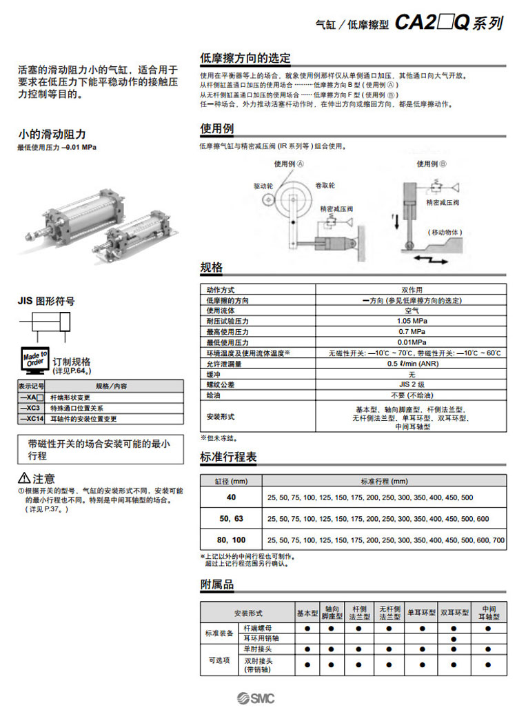 CDA2LQ80-700,CDA2LQ100-700,CDA2FQ80-700,CDA2FQ100-700,CDA2GQ80-700,CDA2GQ100-700,CDA2CQ80-700,CDA2CQ100-700,SMC低摩擦型氣缸