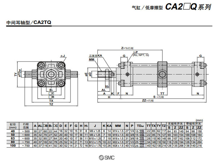 CA2DQ63-600,CA2DQ80-600,CA2DQ100-600,CA2TQ50-600,CA2TQ63-600,CA2TQ80-600,CA2TQ100-600,CA2BQ80-700,CA2BQ100-700,