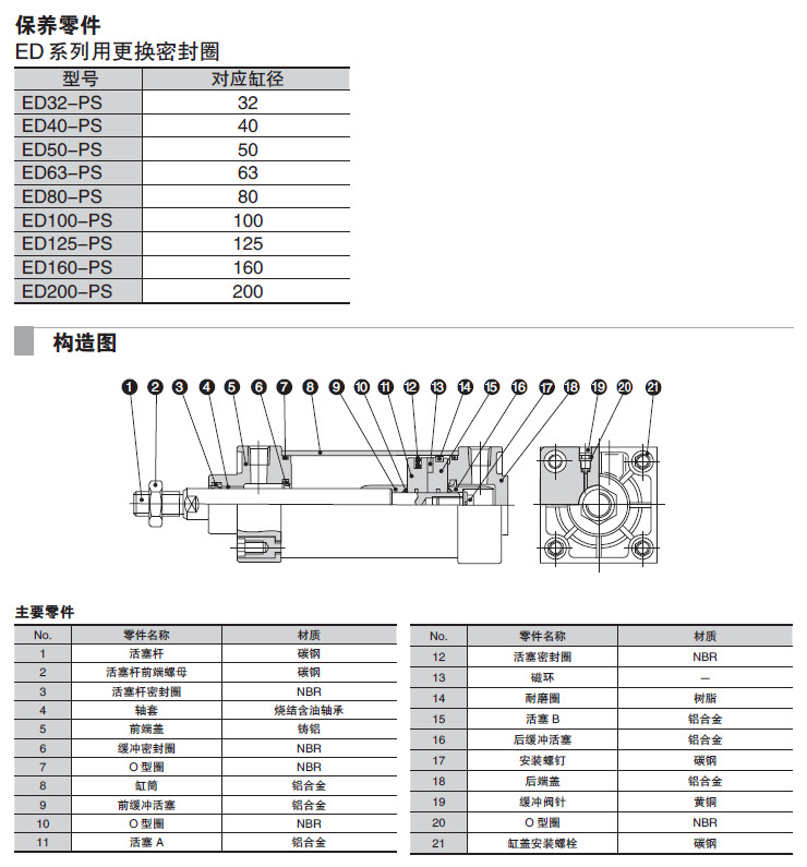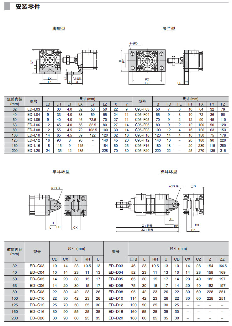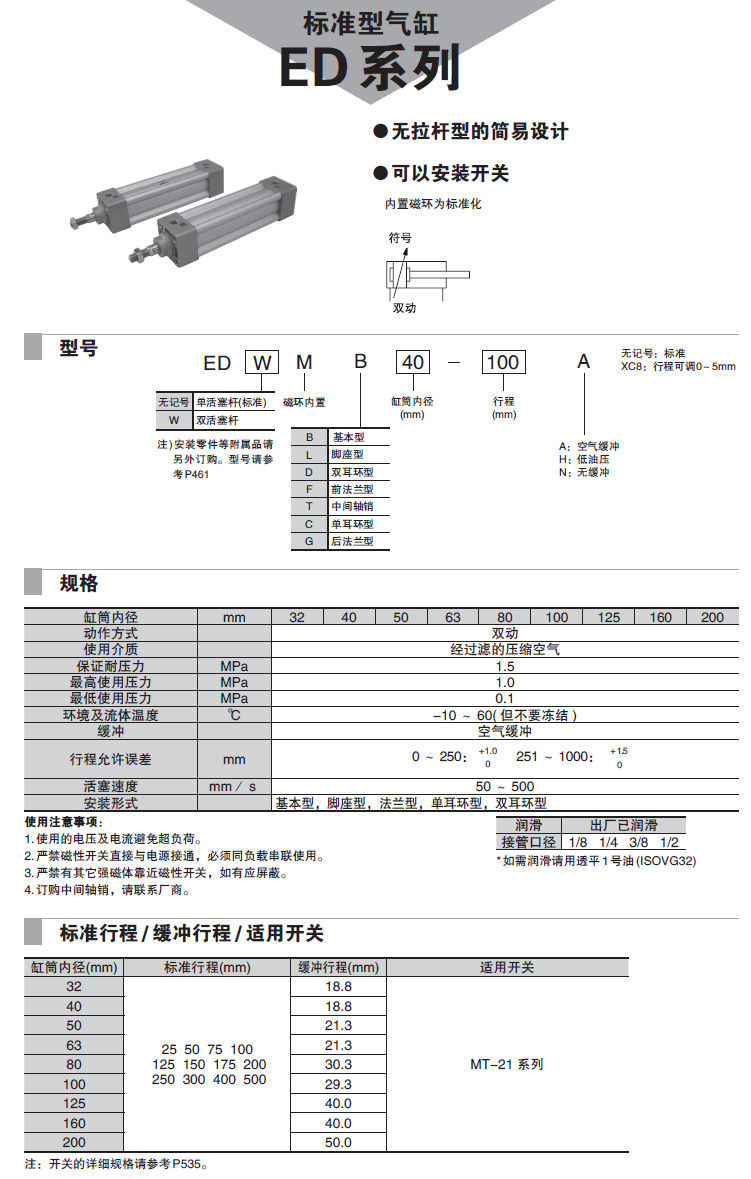 EDMF-200-25,EDMF-200-50,EDMF-200-75,EDMF-200-100 EDMF-200-125,EDMF-200-150,標準型氣缸