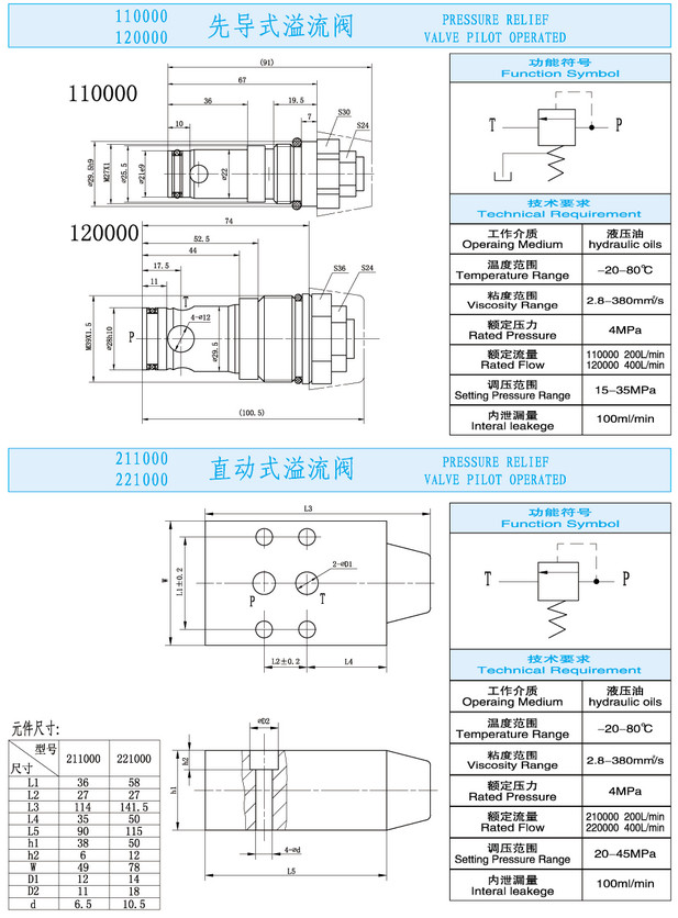 110000,120000,211000,221000,先導(dǎo)式溢流閥