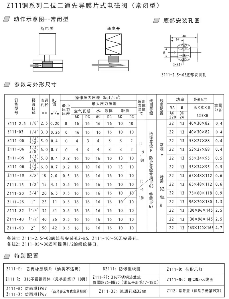 Z111-2.5,Z111-03,Z111-05,Z111-06,Z111-10,Z111-15,Z111-20,Z111-25,先導膜片式電磁閥
