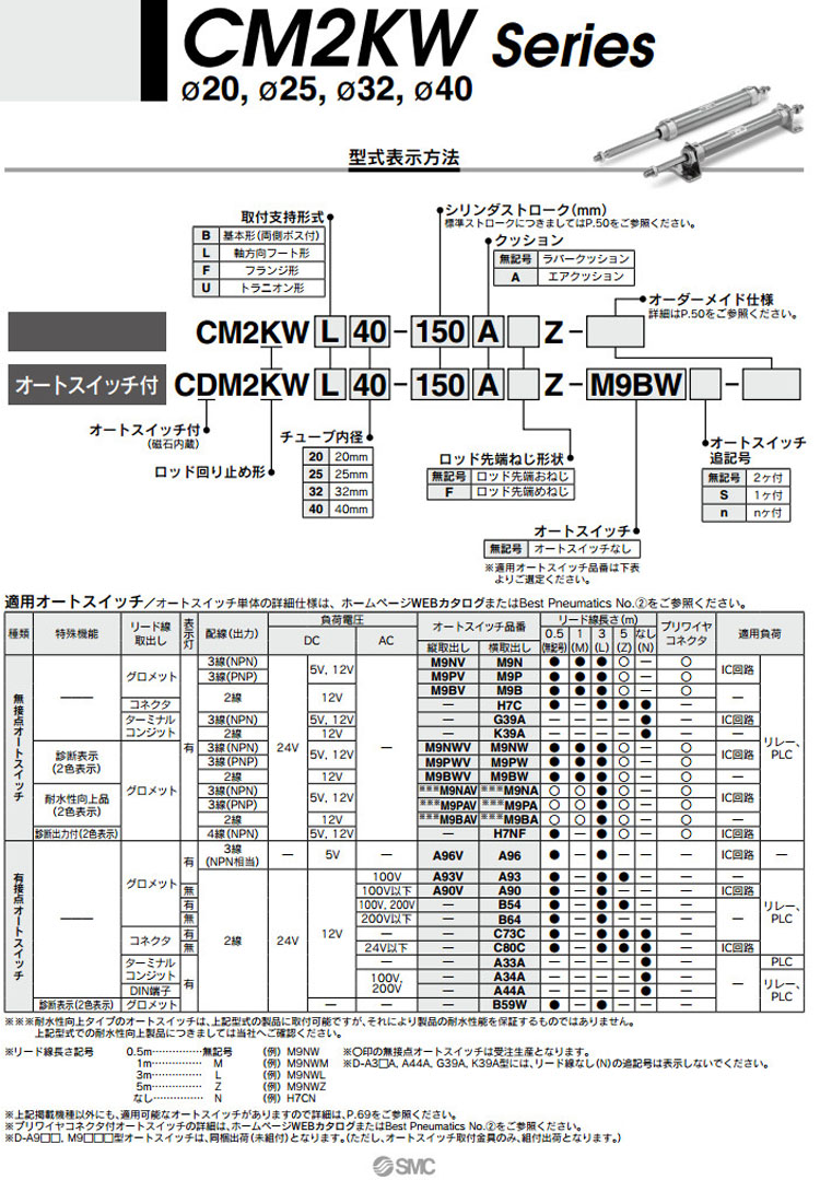 CM2KWB,CM2KWL,CM2KWF,CM2KWU,CDM2KWB,CDM2KWL,CDM2KWF,CDM2KWU,CM2KWB20-25,CDM2KWB20-25,SMC標準型氣缸