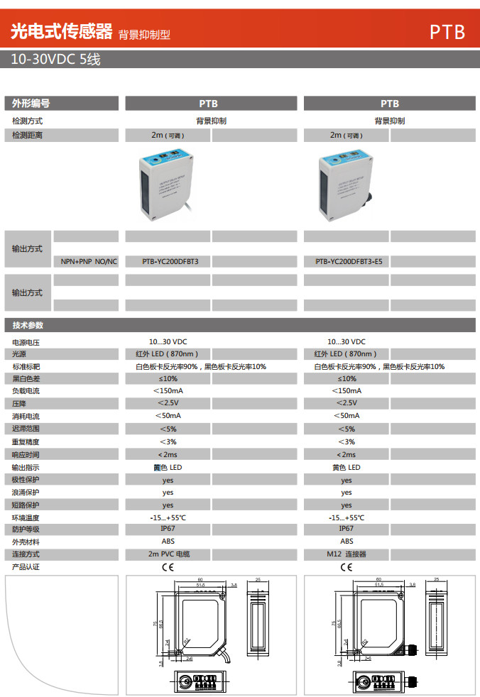 PTB-YC200DFBT3,PTB-YC200DFBT3-E5,光電式傳感器