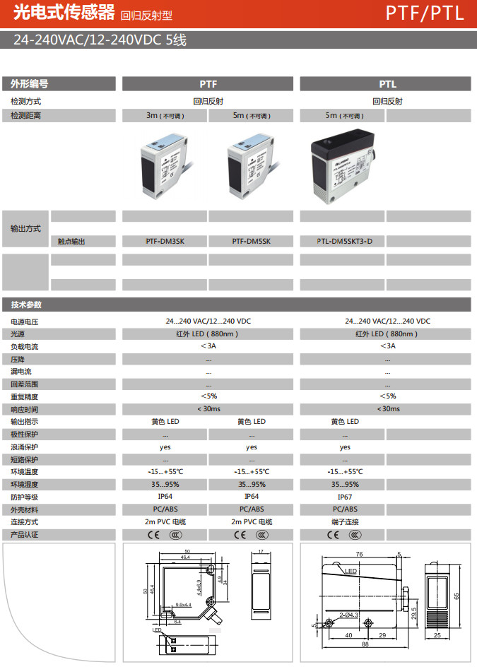 PTF-DM3SK,PTF-DM5SK,PTL-DM5SKT3-D,光電式傳感器