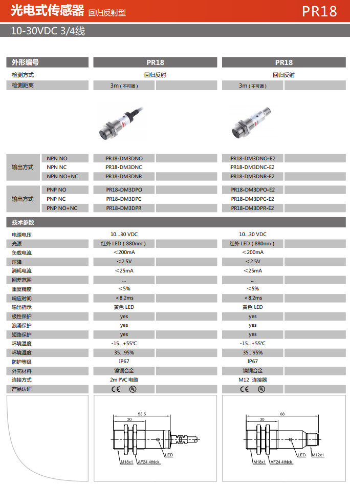 PR18-DM3DNO,PR18-DM3DNC,PR18-DM3DNR,PR18-DM3DPO,PR18-DM3DPC,PR18-DM3DPR,PR18-DM3DNO-E2,光電式傳感器 |