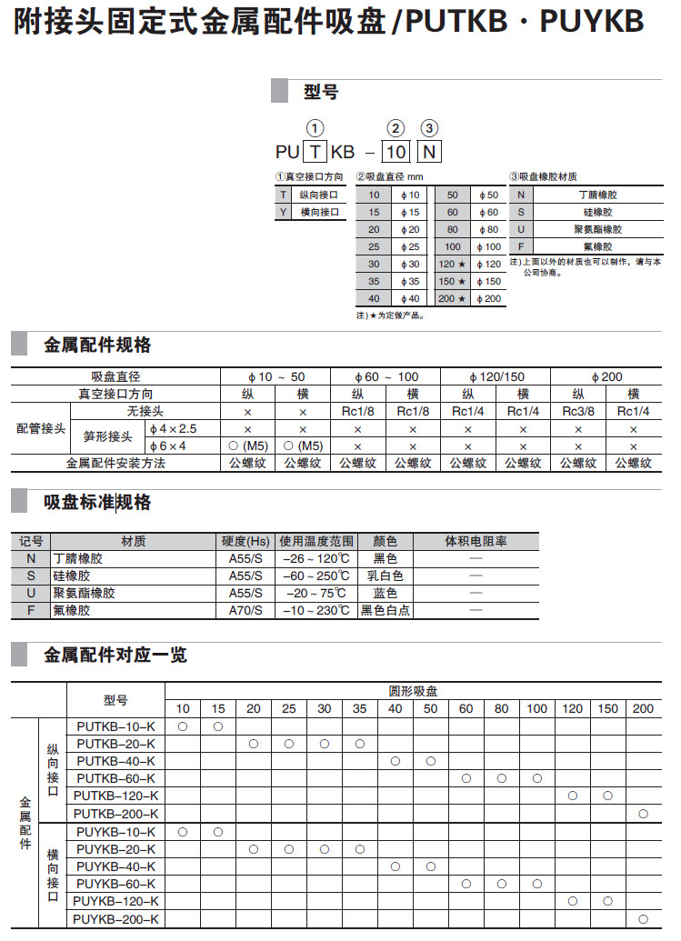 PUTKB-10,PUTKB-20,PUTKB-30,PUYKB-50,PUYKB-60,PUYKB-80,吸盤