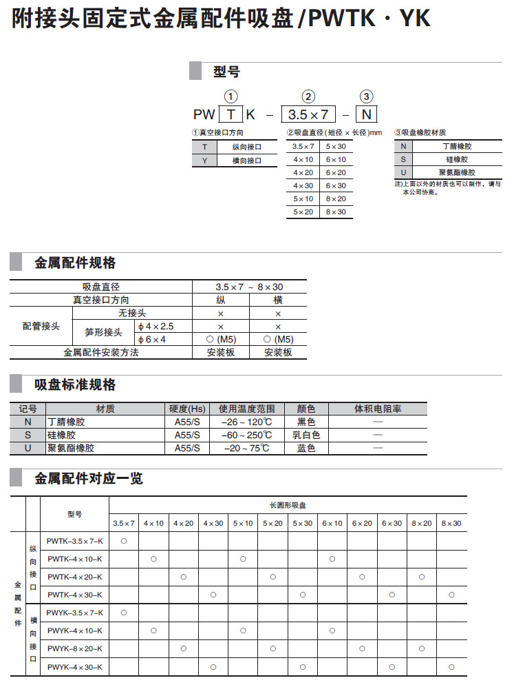 PWTK-3.5*7,PWTK-4*10,PWTK-4*20,PWYK-4*30,PWYK-5*10,PWYK-5*20,吸盤