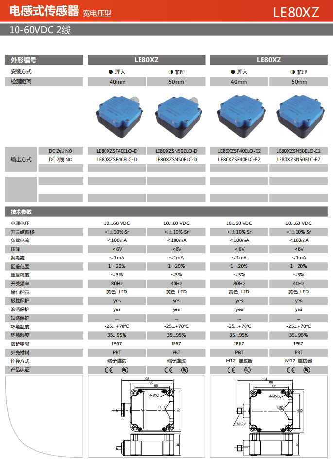 LE80XZSF40ELO-D,LE80XZSF40ELC-D,LE80XZSN50ELO-D,LE80XZSN50ELC-D,LE80XZSF40ELO-E2,電感式傳感器