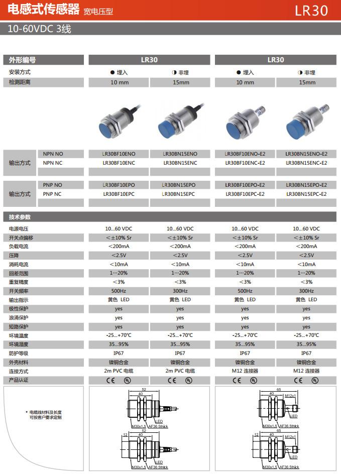 LR30BF10ENO,LR30BF10ENC,LR30BN15ENO,LR30BN15ENC,LR30BN15EPO,LR30BN15EPC,電感式傳感器 |