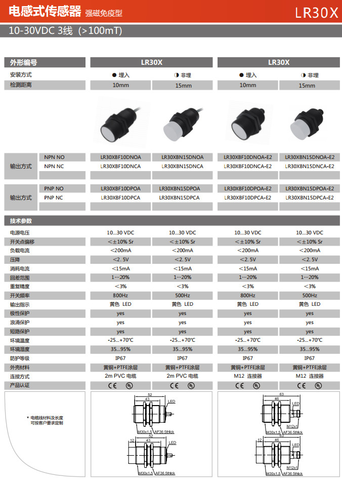 LR30XBF10DNOA,LR30XBF10DNCA,LR30XBF10DPOA,LR30XBF10DPCA,LR30XBN15DNOA,電感式傳感器 |