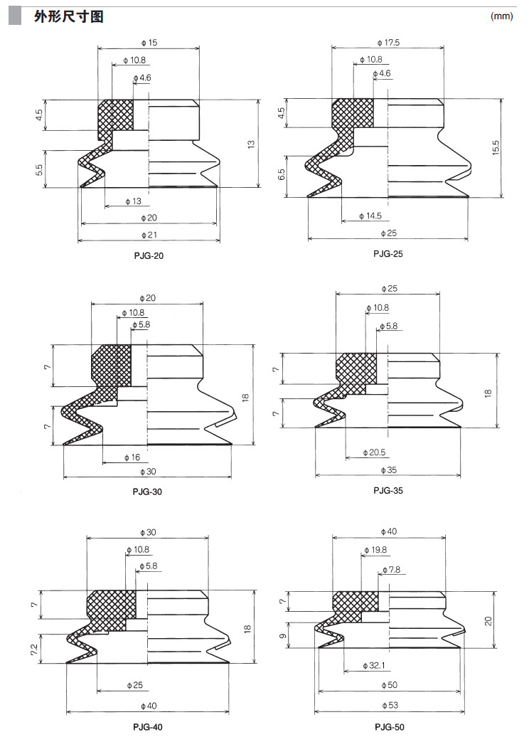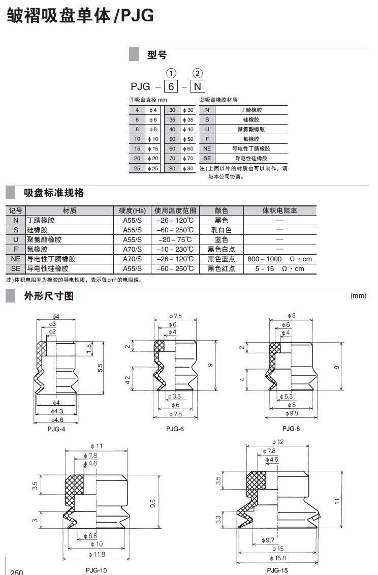 PJG-4,PJG-6,PJG-8,PJG-10,PJG-15,PJG-20,PJG-25,PJG-30,PJG-35,吸盤