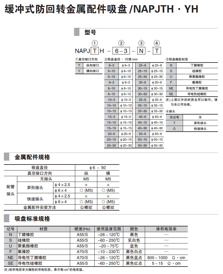 NAPJTH-6,NAPJTH-10,NAPJTH-25,NAPJYH-35,NAPJYH-40,NAPJYH-50,吸盤