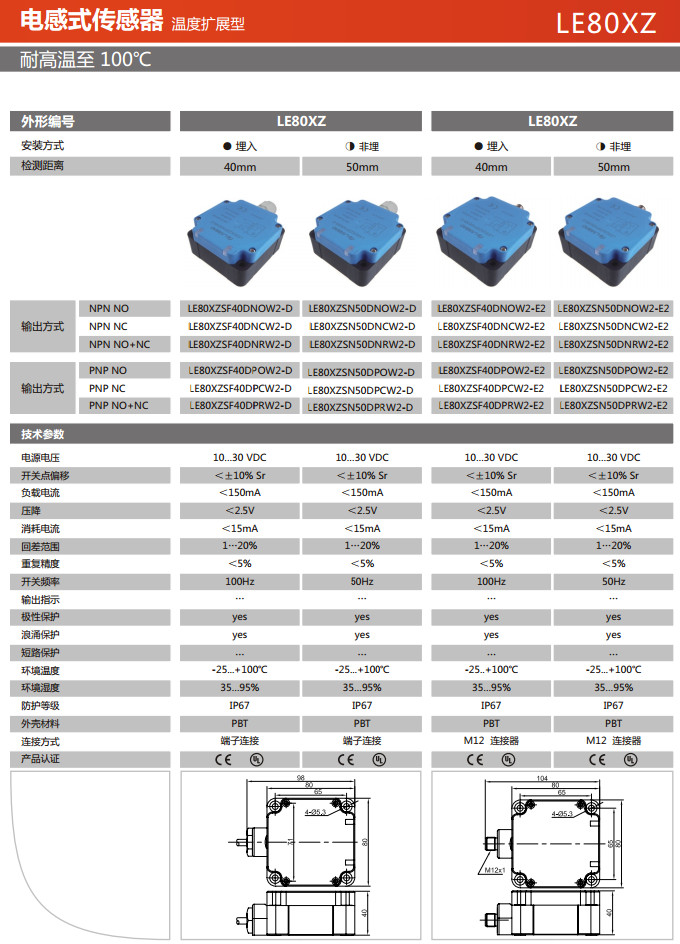 LE80XZSF40DNOW2-D,LE80XZSF40DNCW2-D,LE80XZSF40DNRW2-D,LE80XZSF40DPOW2-D,電感式傳感器 |