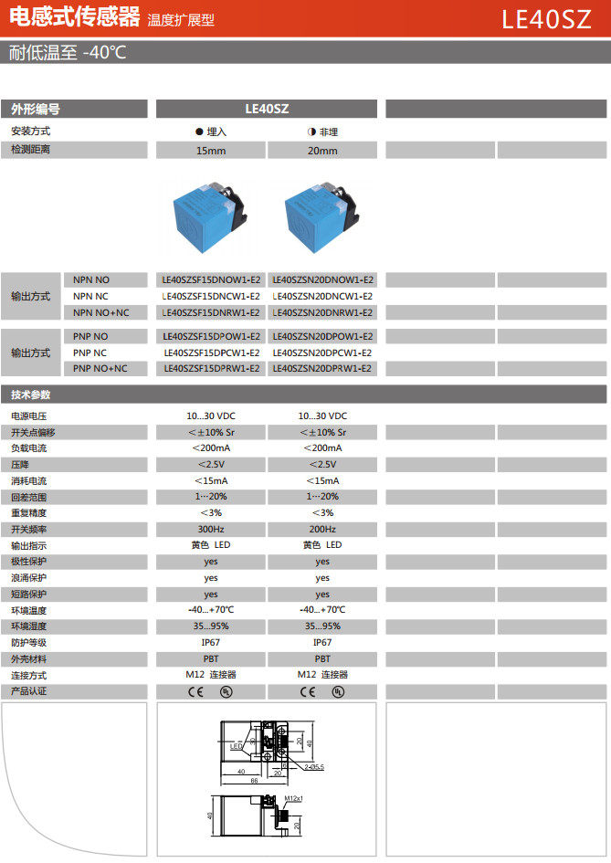 LE40SZSF15DNOW1-E2,LE40SZSF15DNCW1-E2,LE40SZSF15DNRW1-E2,LE40SZSN20DNOW1-E2,電感式傳感器