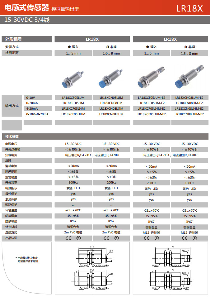 LR18XCF05LUM,LR18XCF05LIM,LR18XCF05LI4M,LR18XCF05LIUM,LR18XCN08LUM,LR18XCN08LIM,電感式傳感器 |
