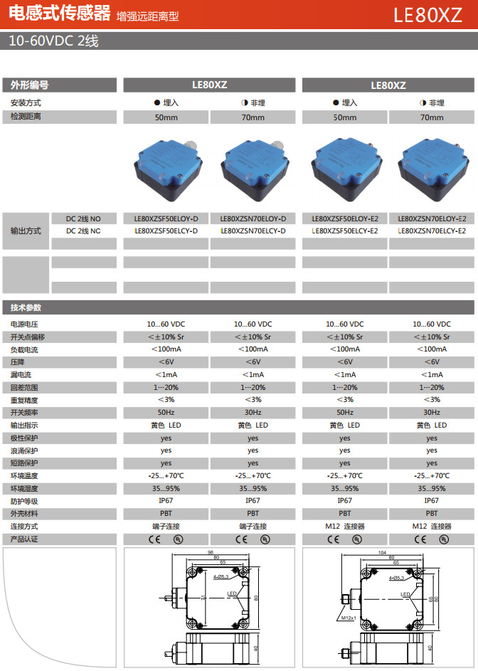 LE80XZSF50ELOY-D,LE80XZSF50ELCY-D,LE80XZSN70ELOY-D,LE80XZSN70ELCY-D,電感式傳感器