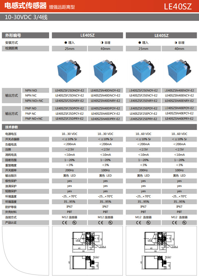 LE40SZSF25DNOY-E2,LE40SZSF25DNCY-E2,LE40SZSF25DNRY-E2,LE40SZSN40DNOY-E2,電感式傳感器