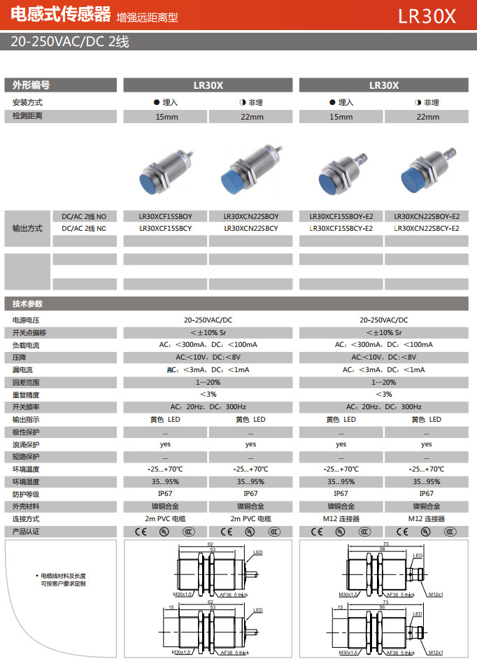 LR30XCF15SBOY,LR30XCF15SBCY,LR30XCN22SBOY,LR30XCN22SBCY,LR30XCF15SBOY-E2,電感式傳感器
