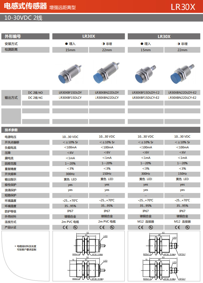 LR30XBF15DLOY,LR30XBF15DLCY,LR30XBN22DLOY,LR30XBN22DLCY,LR30XBF15DLOY-E2,電感式傳感器