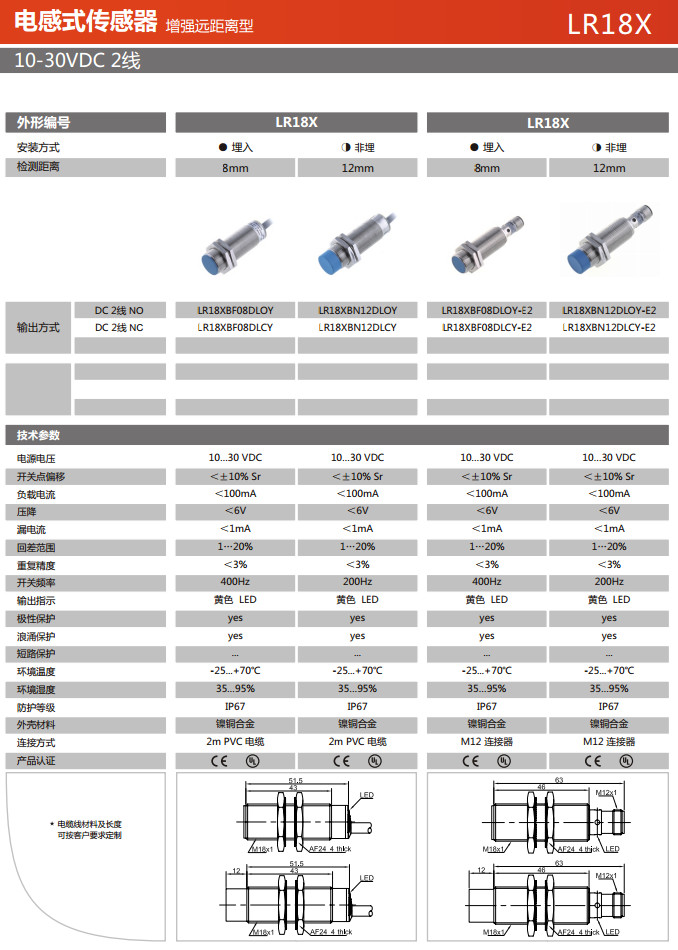 LR18XBF08DLOY,LR18XBF08DLCY,LR18XBN12DLOY,LR18XBN12DLCY,LR18XBF08DLOY-E2,電感式傳感器