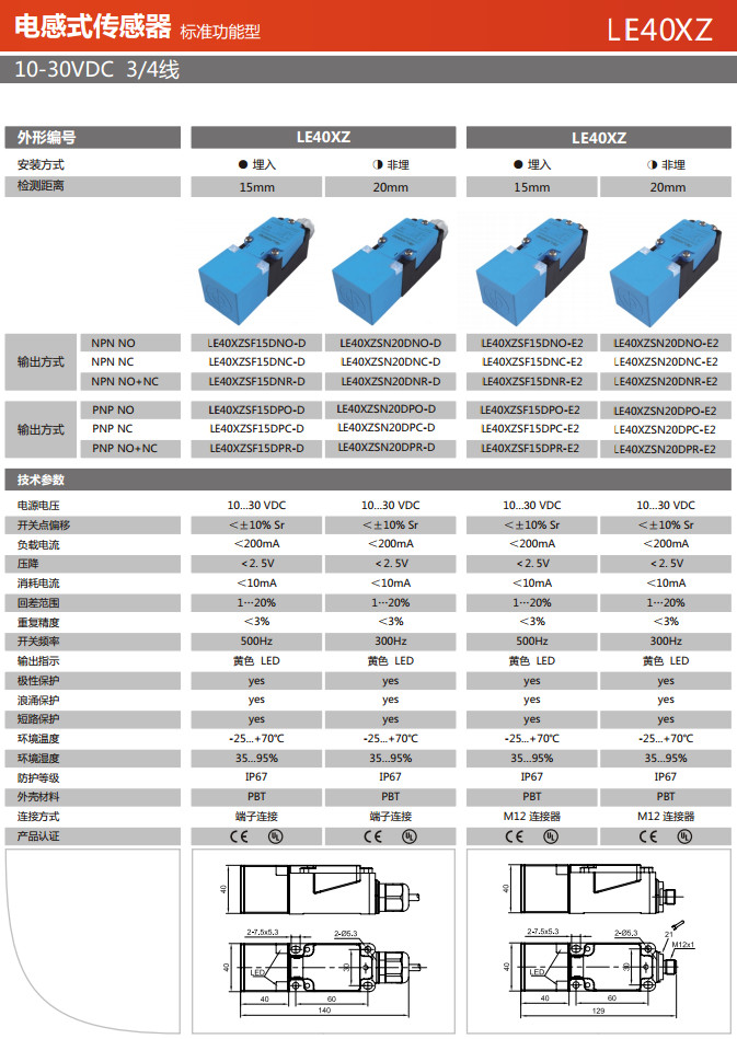 LE40XZSF15DNO-D,LE40XZSF15DNC-D,LE40XZSF15DNR-D,LE40XZSN20DNO-D,LE40XZSN20DNC-D,電感式傳感器 |