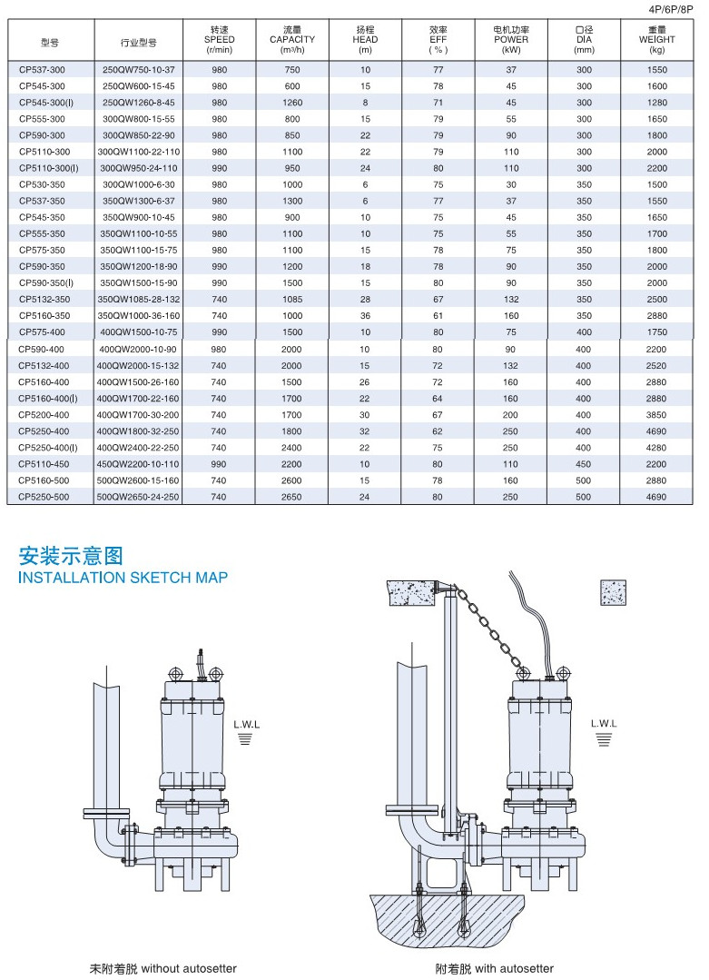 CP50.75-50,CP51.5-50,CP52.2-50,CP53.7-50,CP55.5-50,CP53.7-65,CP55.5-65,CP57.5-65,沉水式污物(泥)泵