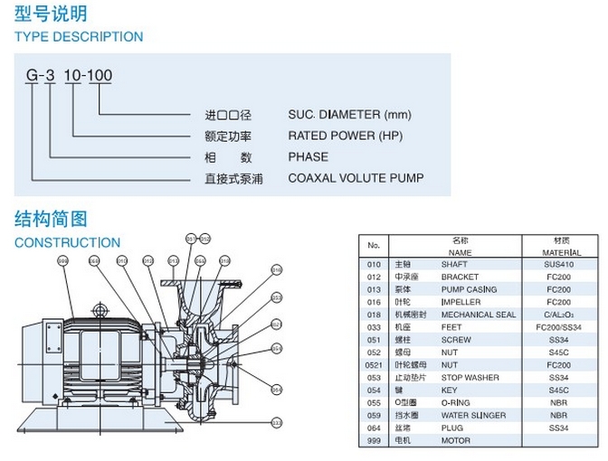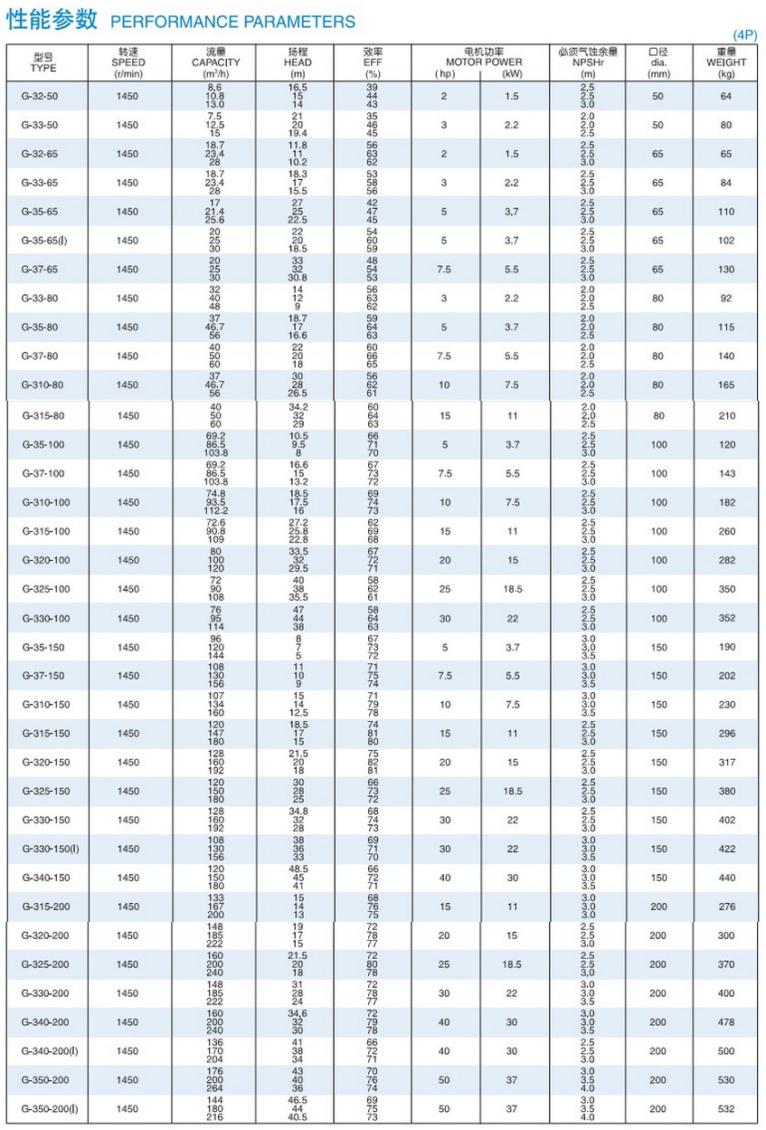 G-35-65,G-37-65,G-310-65,G-315-65,G-320-65,G-35-80,G-37-80,G-310-80,G-315-80,直接式泵浦