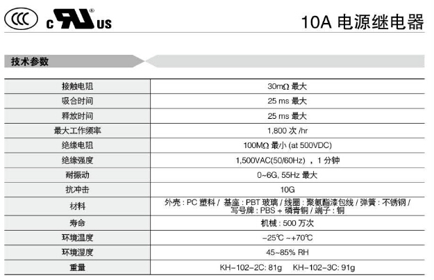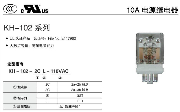 KH-102-2C,KH-102-3C, KH-102-2CL,KH-102-3CL,Koino 10A電源繼電器 |