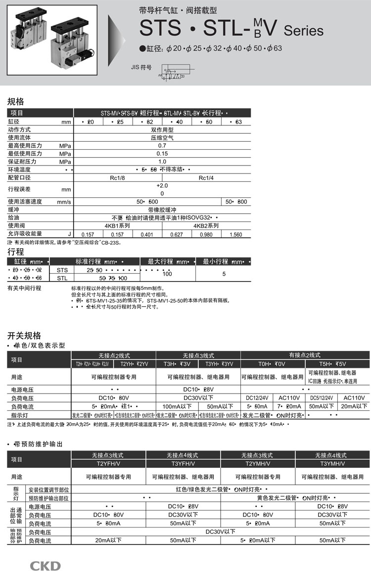 STS-MV1S,STS-MV2S,STS-BV1S,STS-BV2S,STL-MV1S,STL-MV2S,STL-BV1S,STL-BV2S,CKD帶導(dǎo)桿氣缸