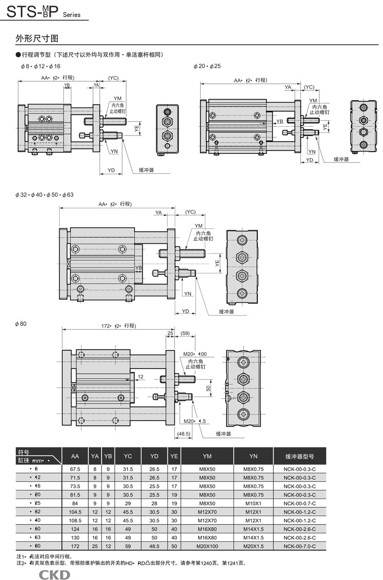 STS-MP-8-10,STS-BP-8-10,STL-MP-8-50,STL-BP-8-50,STS-MP-16-50,CKD帶導(dǎo)桿氣缸