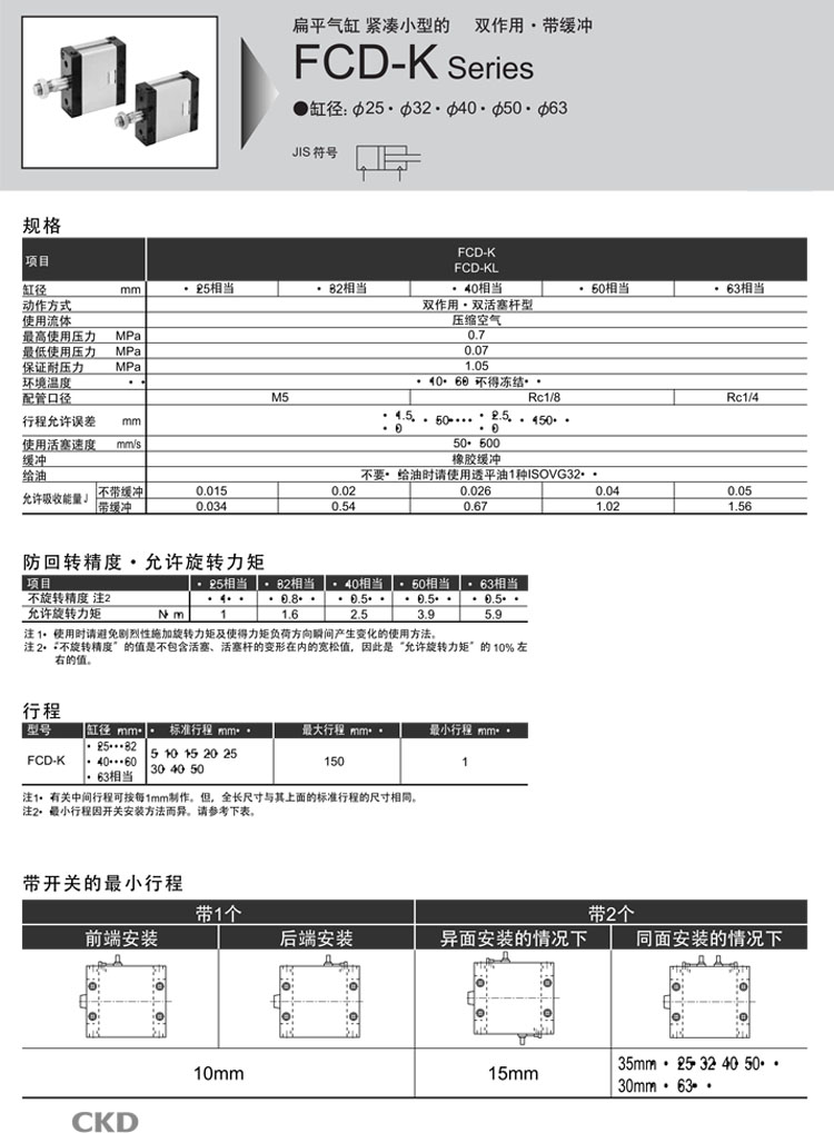 FCD-K-25,FCD-K-32,FCD-K-40,FCD-K-50,FCD-K-63,FCD-KL-25,FCD-KL-32,FCD-KL-40,FCD-KL-50,FCD-KL-63,CKD扁平