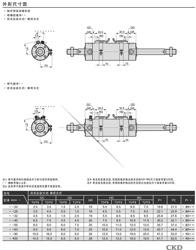 SCM-D-LB-100B-250,SCM-D-LB-100B-300,SCM-D-FA-100B-25,SCM-D-FA-100B-50,SCM-D-FA-100B-75,CKD圓形緊湊氣缸
