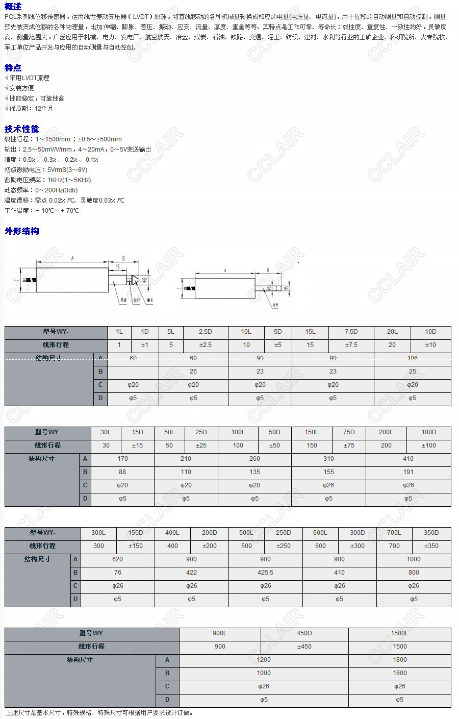 WY-1L,WY-1D,WY-5L,WY-2.5D,WY-10L,WY-5D,WY-15L,WY-.5D,WY-20L,WY-10D,WY-30L,WY-15D,WY-50L,線位移傳感器
