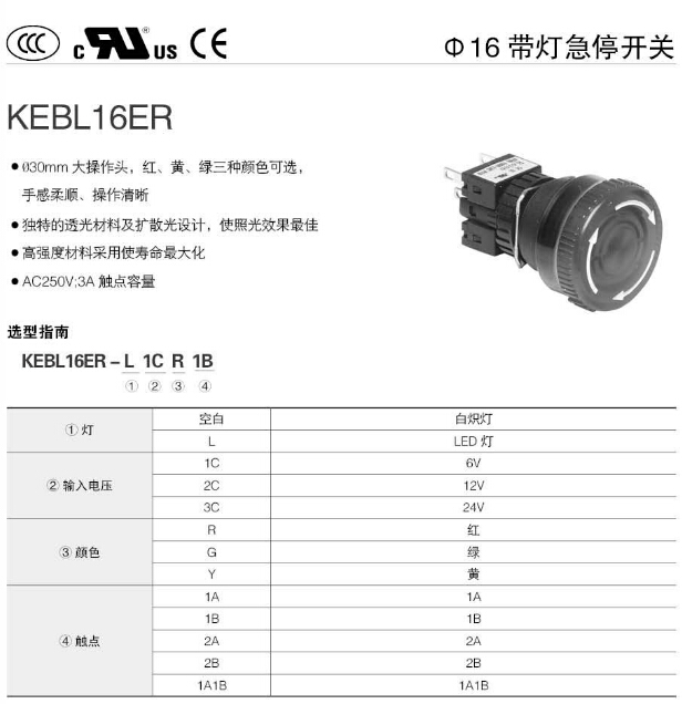 KEBL16ER,Koino Φ16帶燈急停開關(guān)