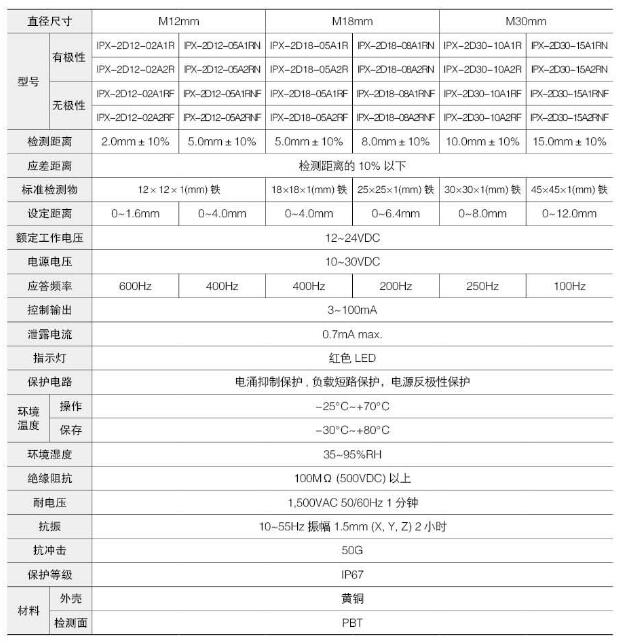 IPX-D12-02E1R,IPX-D18-05E1R,IPX-D30-10E1R,IPX-2D12-02A1R,IPX-2D18-05A1R,Koino接插型接近開關(guān) |