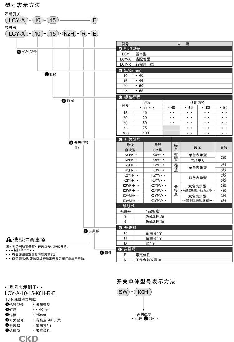 LCY-10,LCY-16,LCY-20,LCY-Y-25,LCY-25,LCY-A-10,LCY-A-16,LCY-A-20,CKD線性滑動(dòng)氣缸