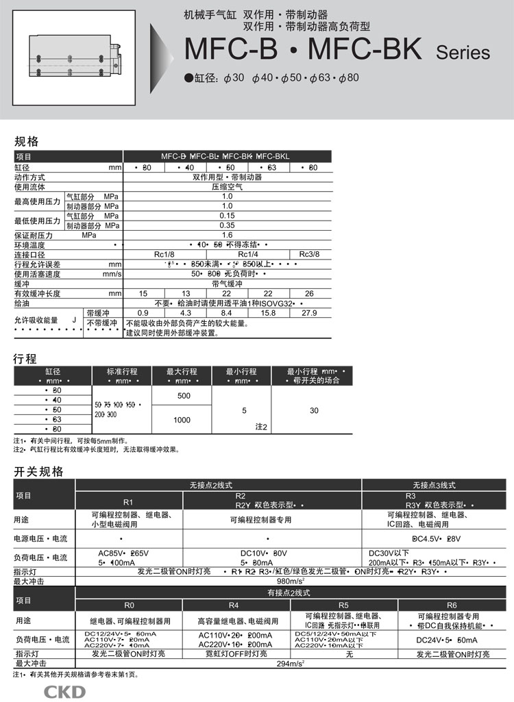 MFC-BKL-LA-80B-200,MFC-BKL-LA-80B-300,MFC-BKL-FA-80B-50,MFC-BKL-FA-80B-75,MFC-BKL-FA-80B-100,CKD機(jī)械手氣缸