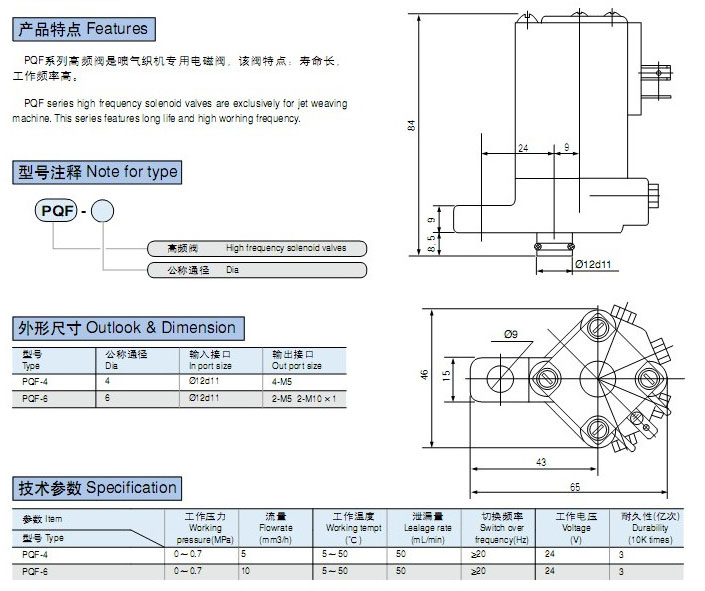 PQF系列高頻閥是噴氣織機專用電磁閥,該閥特點:壽命長,工作頻率高。