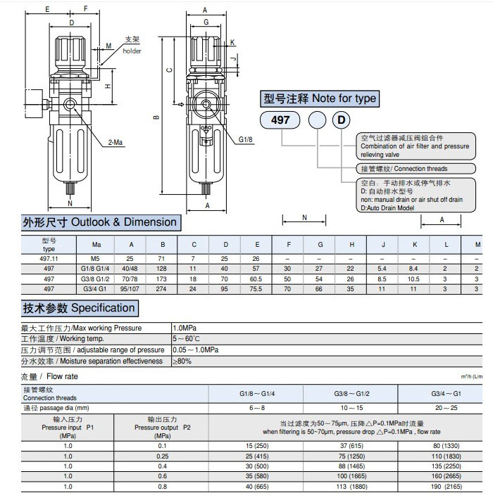 497-G1/8,497-G1/4,497-G3/8,497-G1/2,497-G3/4,497-G1,過濾減壓閥