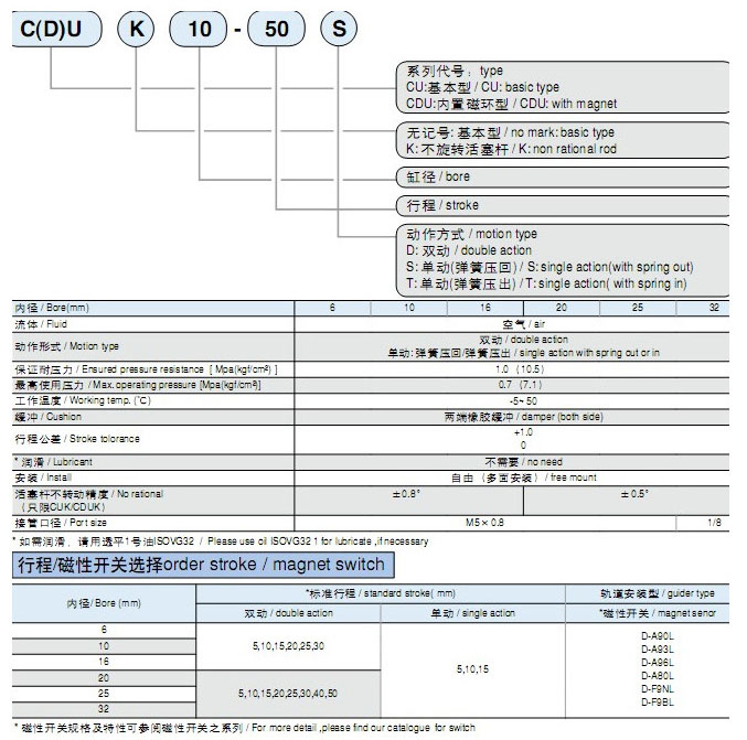CDU25-20,CDU25-25,CDU25-30,CDU25-40,CDU25-50,CDU32-5,CDU32-10,CDU32-15,CDU32-20,CDU32-25,CDU32-30,