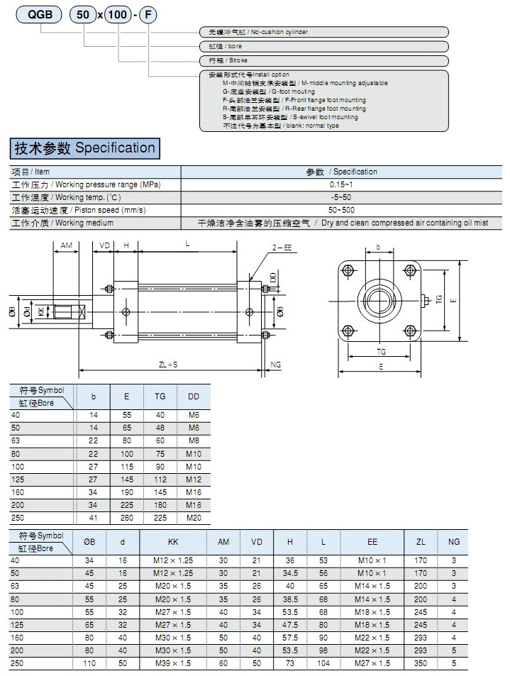 QGB40×100,QGB50×100,QGB63×100,QGB80×100,QGB100×100,QGB125×100,QGB160×100,QGB200×100,QGB250×100,
