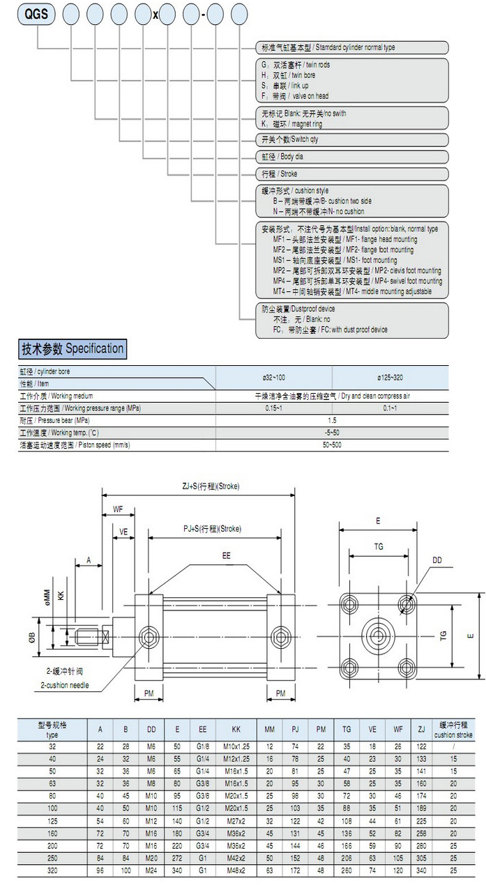 QGSFK32,QGSFK40,QGSFK50,QGSFK63,QGSFK80,QGSFK100,QGSFK125,QGSFK160,QGSFK200,QGSFK250,QGSFK320,標(biāo)準(zhǔn)氣缸