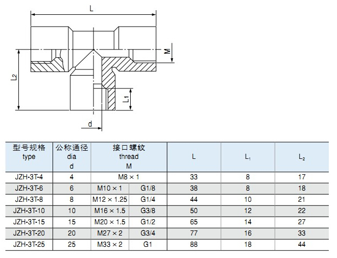 JZH-3T-4,JZH-3T-6,JZH-3T-8,JZH-3T-10,JZH-3T-15,JZH-3T-20,JZH-3T-25,組合式三通管接頭