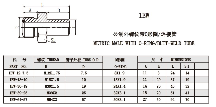 1EW-12-7.5,1EW-18-10,1EW-30-19,1EW-39-25,1EW-64-57,平面密封接頭