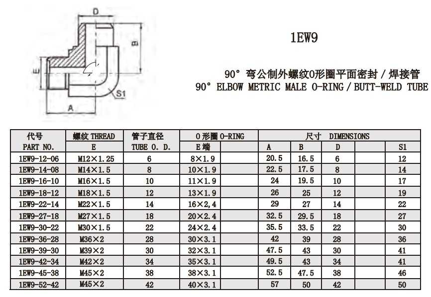1EW9-12-06,1EW9-14-08,1EW9-16-10,1EW9-18-12,1EW9-22-14,1EW9-27-18,1EW9-30-22,平面密封接頭