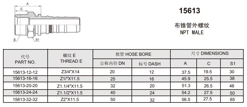 15613-12-12,15613-16-16,15613-20-20,15613-24-24,15613-32-32,扣壓式軟管接頭