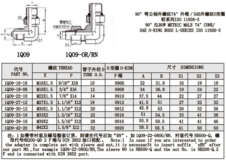 1Q09-16-16,1Q09-18-18,1Q09-22-10,1Q09-27-12,1Q09-30-12,1Q09-33-16,1Q09-42-20,1Q09-39-16,錐面密封接頭