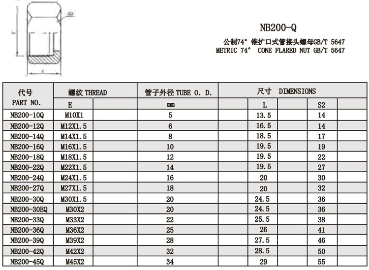 NB500-10Q,NB500-12Q,NB500-14Q,NB500-16Q,NB500-18Q,NB500-22Q,NB500-24Q,NB500-27Q,錐擴(kuò)口式管接頭