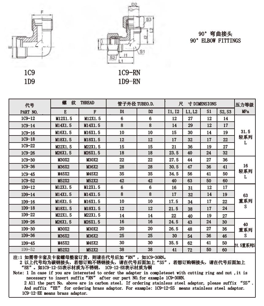 1C9-12,1C9-22,1C9-30,1C9-45,1C9-52,1D9-14,1D9-26,1D9-36,1D9-42,1D9-52,彎曲接頭