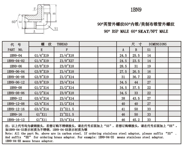1BN9-04,1BN9-06,1BN9-08,1BN9-12,1BN9-16,1BN9-04-02,1BN9-06-04,1BN9-06-08,錐面密封接頭